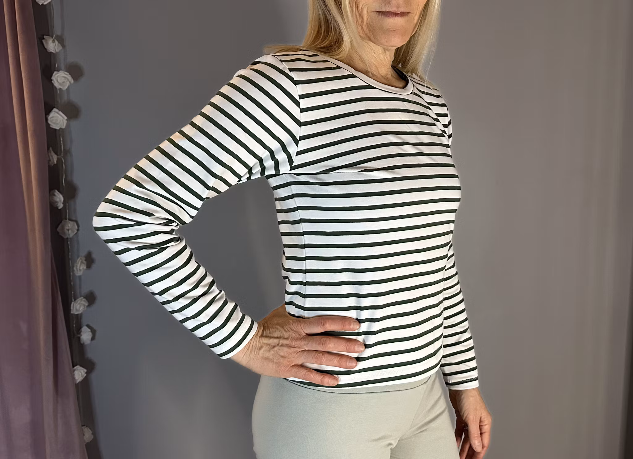 Tröjan Lycklig -Grönvit rand 549 kr Storlek XS S M L I lager. Lägg i korgen Produktbeskrivning Recensioner Denna bekväma tröja är figursydd, höftlång och har rundad hals.Sydd av vår ekologiska bomullstrikå med elastan.